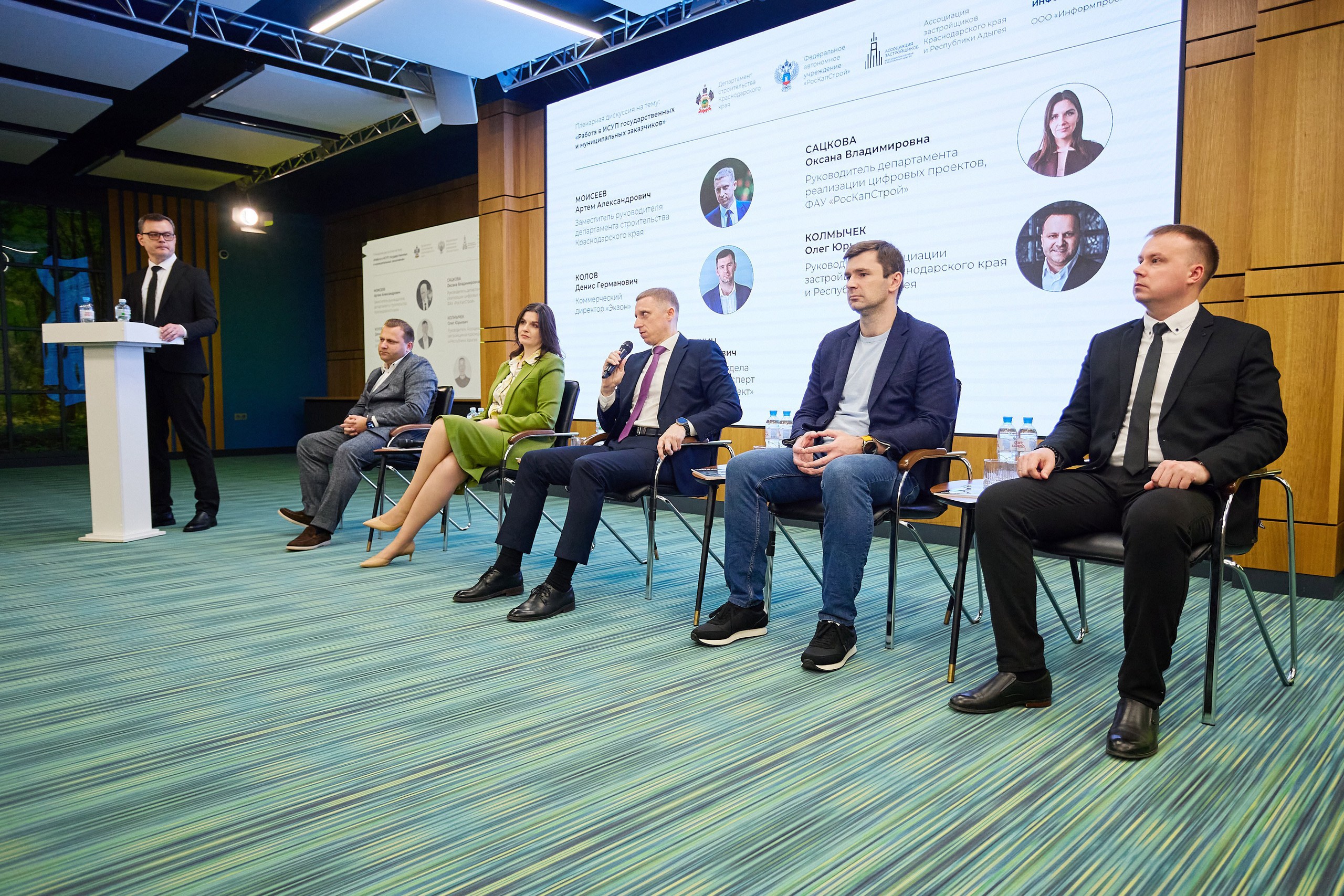 От Краснодарского края выступил заместитель руководителя департамента строительства Артём Александрович Моисеев. Он отметил, что для региона цифровизация уже стала свершившимся фактом и объявил ориентиры: обеспечение информационного сопровождения не менее 50% проектов к середине года и достижение 100% цифрового ведения проектов к концу 2026 года. Отдельно был сделан акцент на качестве данных и необходимости вовлечения всех участников строительного процесса — от заказчиков и генподрядчиков до строительного контроля и гостройнадзора.